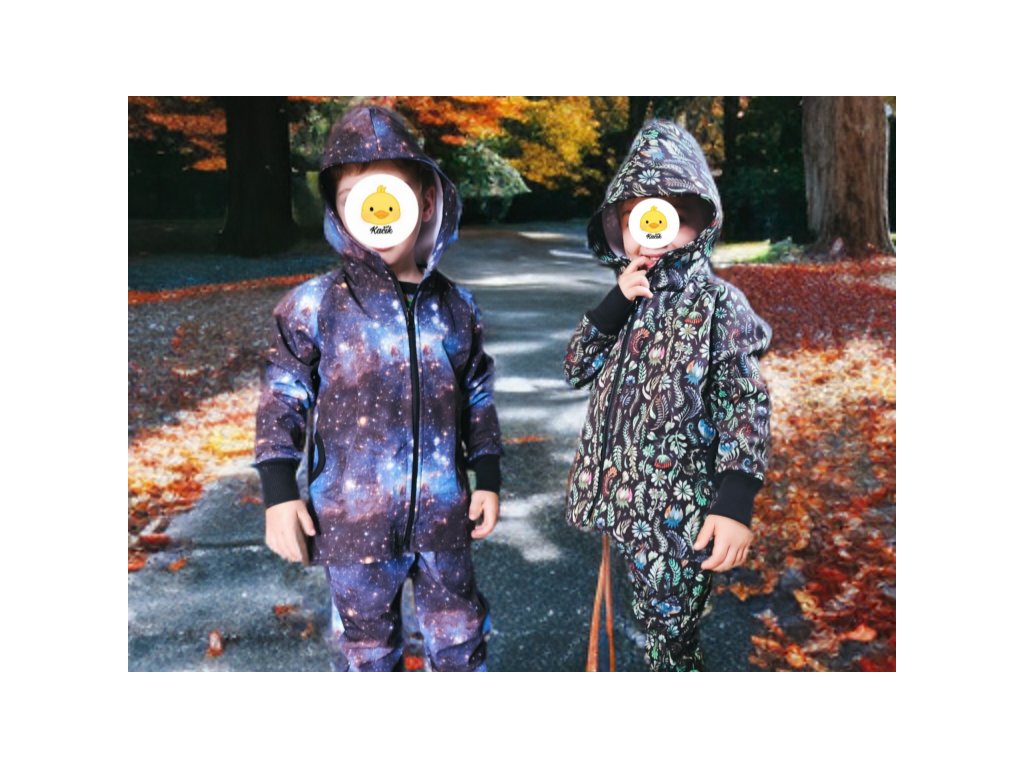 - Bunda i kalhoty jsou volnějšího střihu a na rukávech, nohavicích a v pase májí delší náplety, které můžete ohrnut = Bunda i kalhoty porostou s vaším dítětem :)